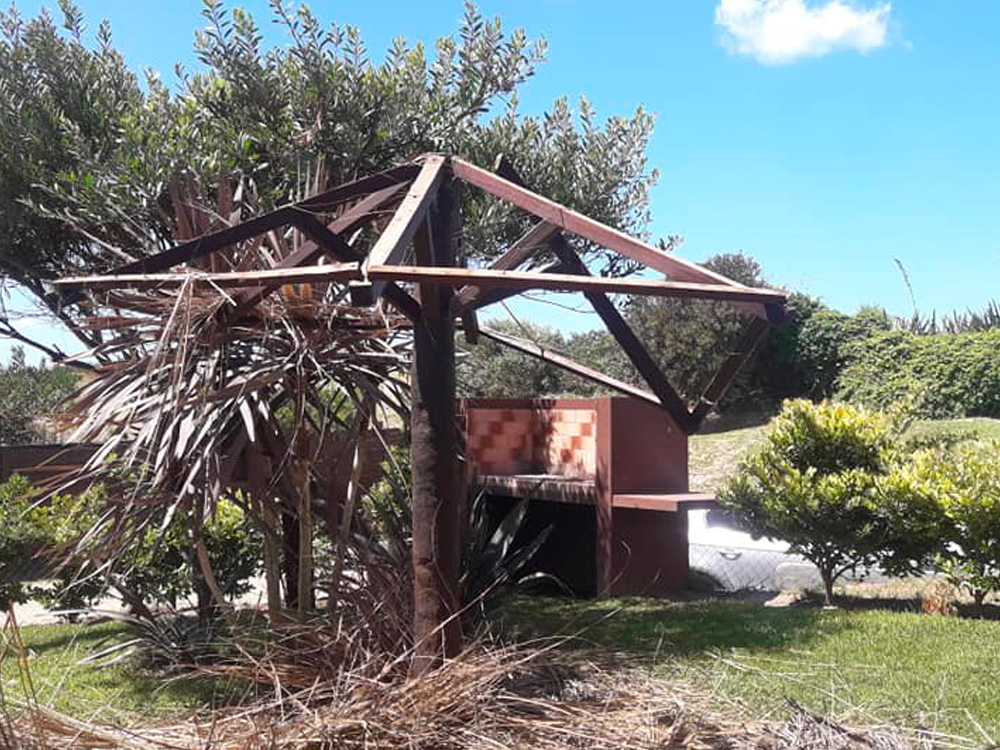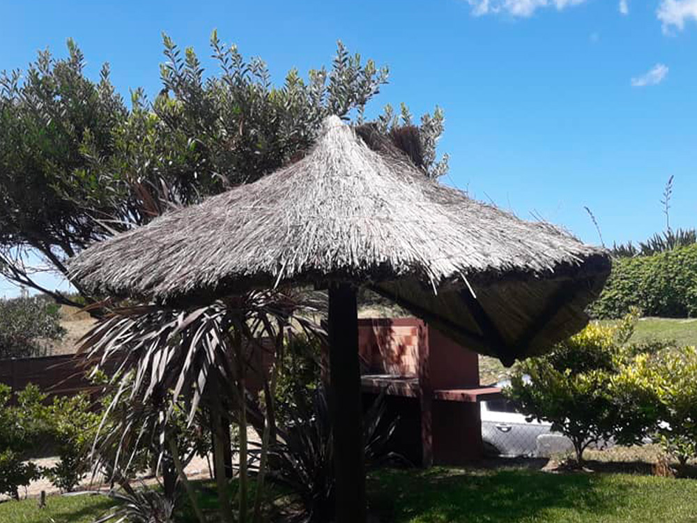 Sombrilla en Mar Azul. Reposición de techo de sombrilla de junco con sidding lp